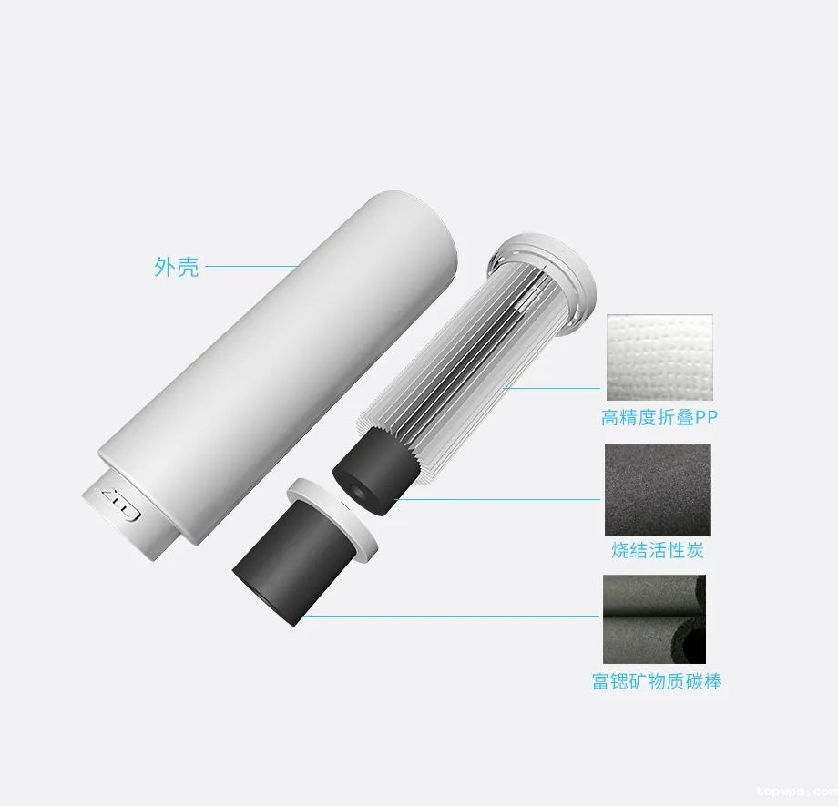 一种磁化滤芯结构,内置高磁棒,可提供磁场。经过磁场的水,其表面张力、含氧量、盐类的溶解性等均得到较大改善。