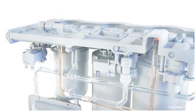 采用高强度的食品级PPO材料一体成型,耐高压、防爆破,彻底杜绝管路与接头的连接,最大限度减少漏水风险,同时因为水流长度减短,更加节能。此外也杜绝了金属挂板长期使用后的生锈与变形。