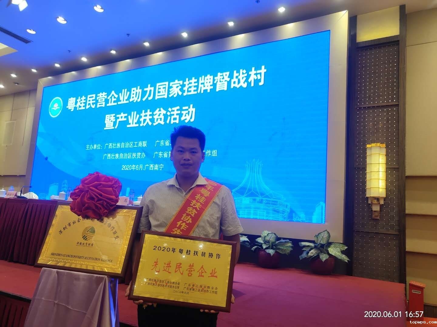 6月1日下午,2020年粤桂民营企业助力国家挂牌督战村暨产业扶贫协作行动会议,在广西南宁正式召开。taptap相关游戏作为一个参与结对帮扶国家挂牌督战村的粤桂民营企业的代表,也受邀出席了该次会议。该次会上,点点彩票app下载官网最新版安卓5S净水器的代表袁总被邀请上台授予扶贫企业的牌匾。