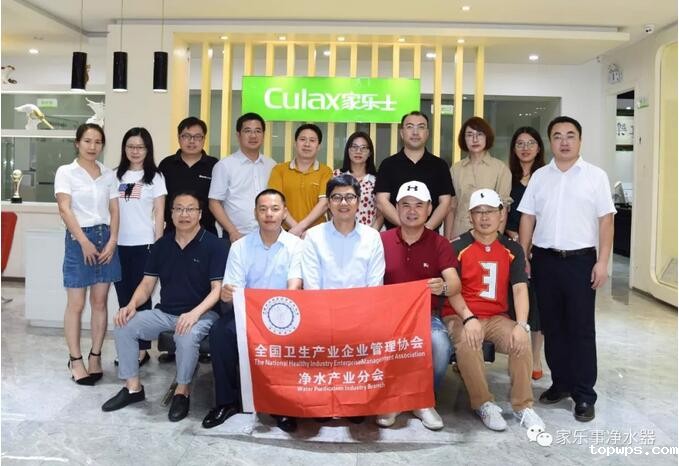 全国卫生产业企业管理协会副秘书长、净水产业分会会长唐建星先生(前排中间)一行与家乐士总经理刘小平先生(前排左二)等领导亲切合影
