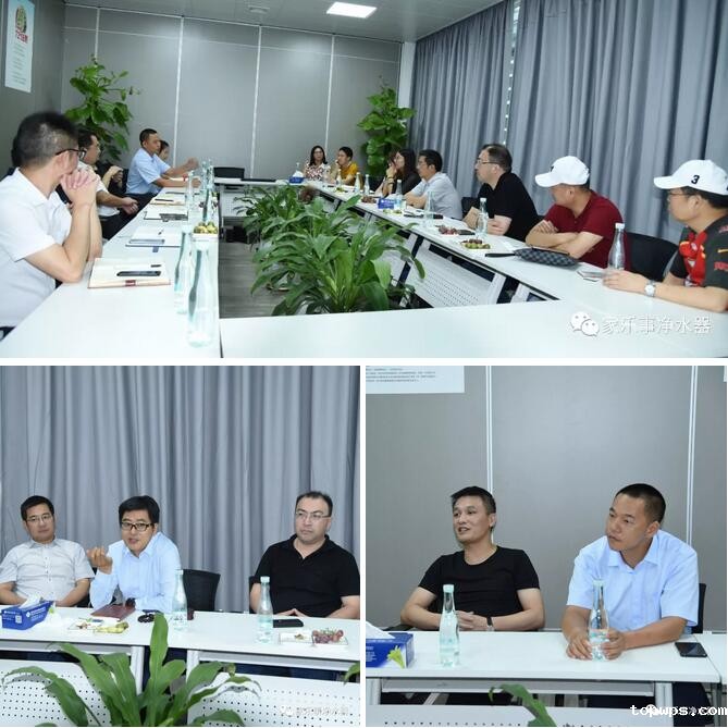 唐会长一行在多功能会议室与家乐士董事长陈惠东先生、总经理刘小平先生、副总经理刘敬军先生等相关领导进行了亲切的交流。唐会长一行通过家乐士公司介绍对家乐士有了更深入的了解;同时,双方就净水行业和家乐士的现状及未来发展等多个维度的问题进行了深入的沟通交流,在相互问答的过程中碰撞出了不少思想的火花。