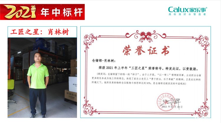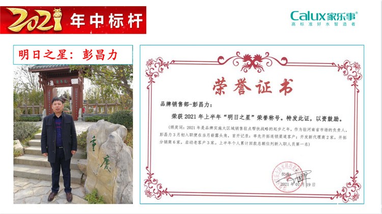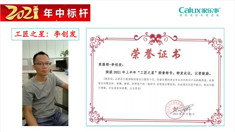 匠心筑梦,超越标杆。未来,家乐士将继续发现标杆,培育标杆,为标杆提供更大的成长空间,由标杆带动全体员工奋力前进,共同实现让水更洁净,让人更幸福的伟大使命,最终实现让千万家庭都能饮用上健康好水,打造属于中国人的日不落净水帝国。