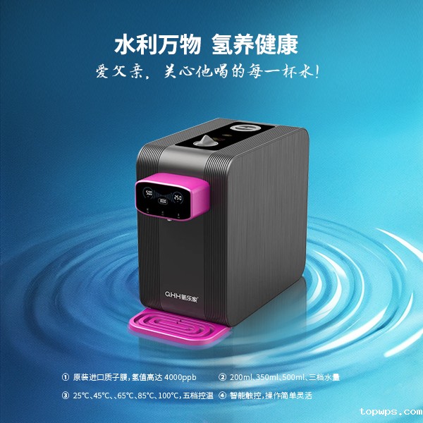 氢乐家H5即热式富氢水机,运用铂金含氢水解技术,将直饮水转化为富氢水,(氢溶度>4000ppb,纯度高达99.992%);水中富含的活性氢分子,具有强大的抗氧化能力,有助于中和自由基、延缓衰老、增强身体免疫力等。让父亲的每一口饮用,都是为身体注入健康能量。