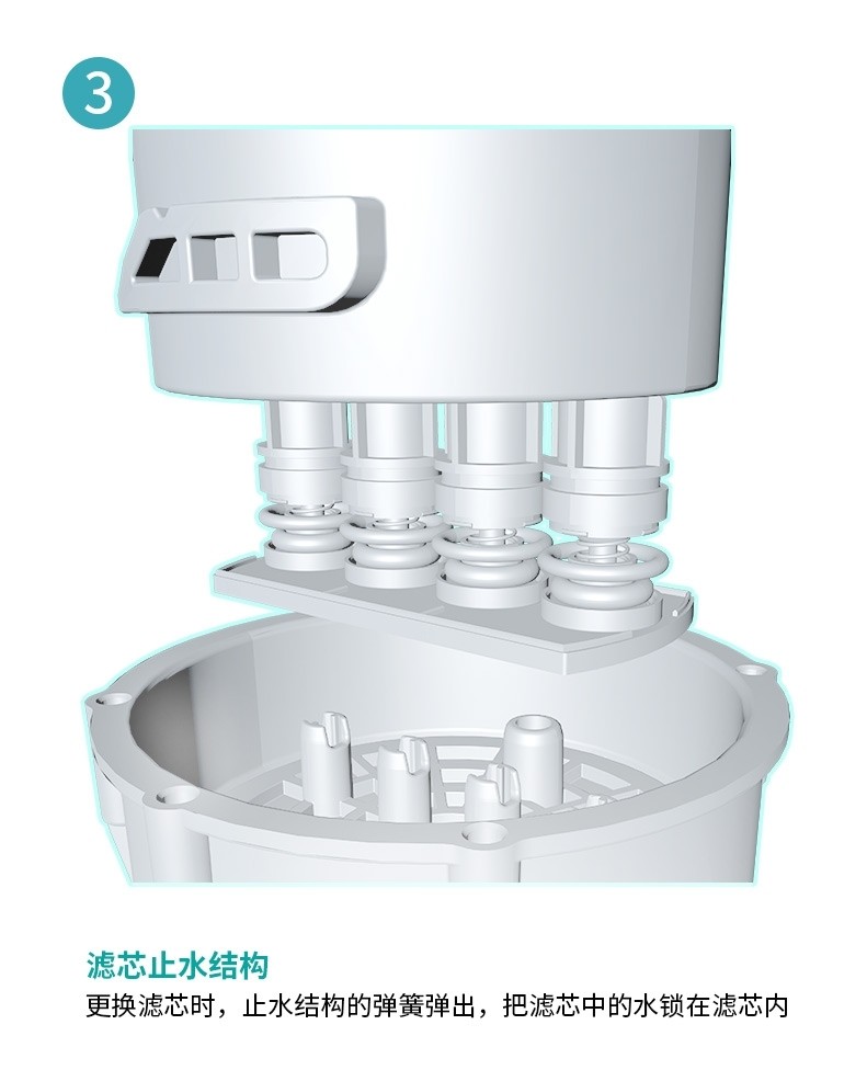 为了维持净水器正常运行,滤芯需要定期更换。然而,滤芯越多,意味着更换滤芯的频率越高。如果换芯方式比较麻烦还需要请师傅上门,费钱、费时又费力!