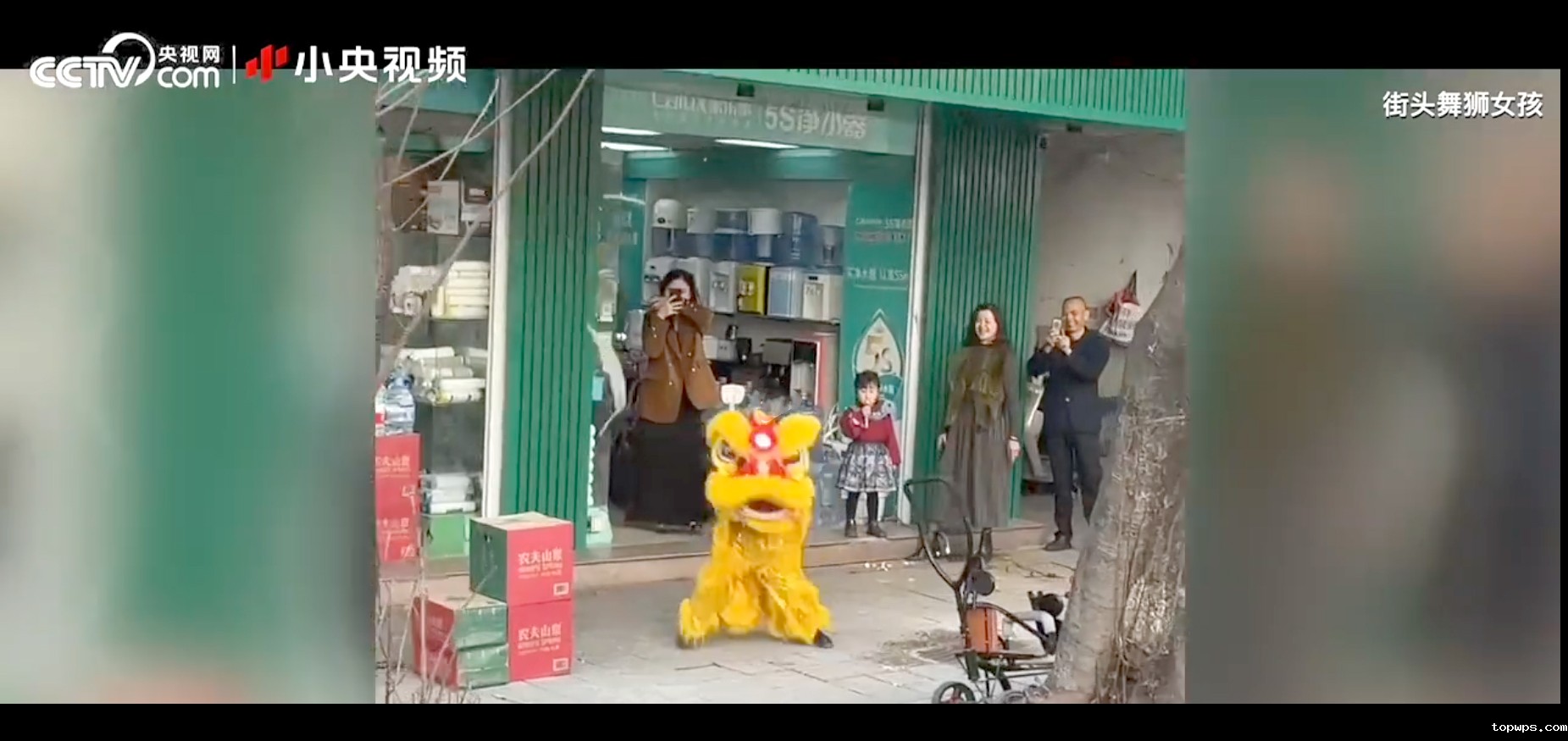 小女孩在自家经营的点点彩票app下载官网最新版安卓净水器门店前舞狮