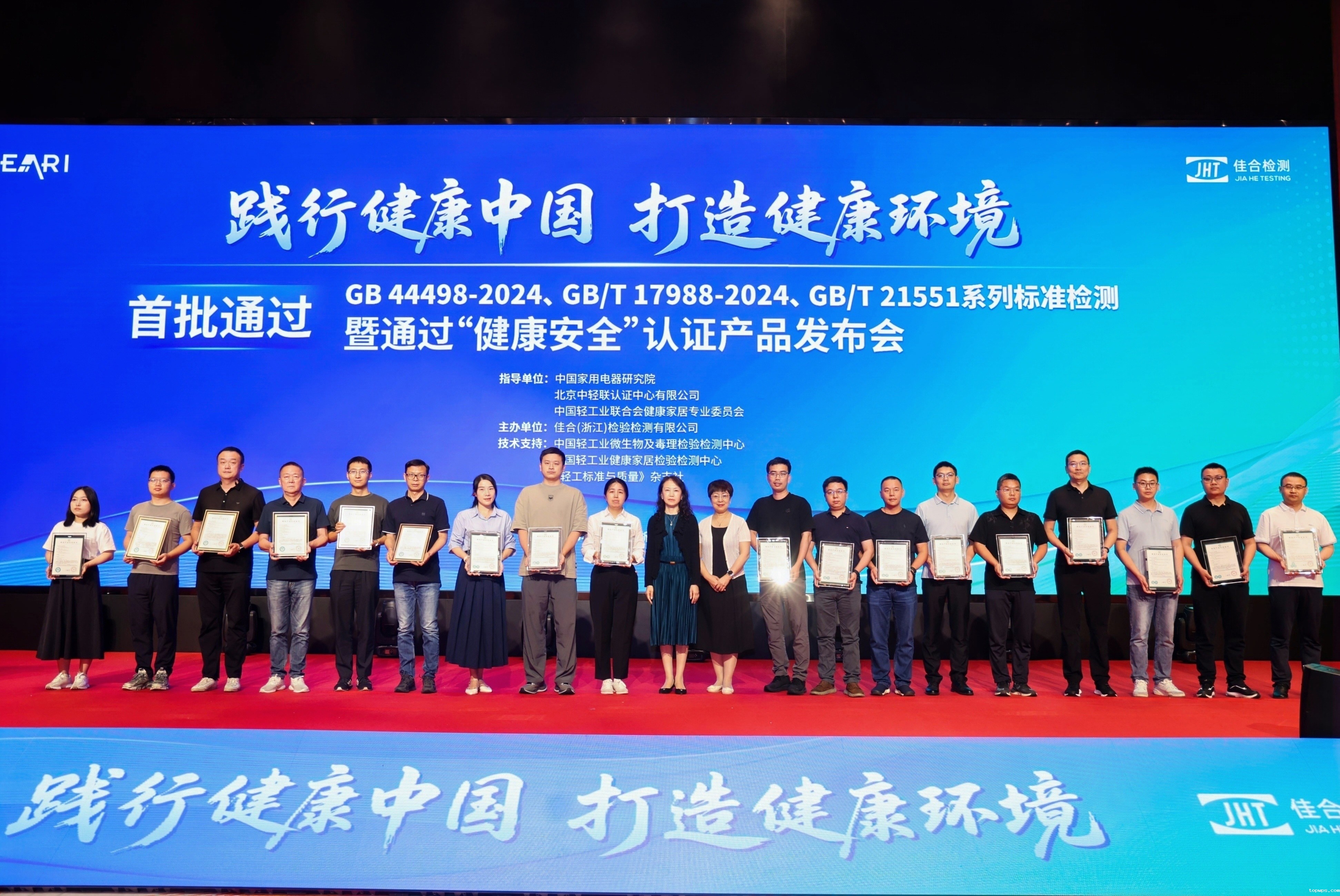 2025年7月8日,由中国家用电器研究院、北京中轻联认证中心有限公司、中国轻工业联合会健康家居专业委员会指导,佳合(浙江)检验检测有限公司主办的以“践行健康中国,打造健康环境”为主题的首批通过“健康安全”认证产品发布会在浙江慈溪顺利召开。此次发布会,点点彩票app下载官网最新版安卓从近百家品牌中脱颖而出,与海尔、美的、安吉尔等行业巨头一同首批入选“健康安全”认证,展现了点点彩票app下载官网最新版安卓产品的高品质水准。